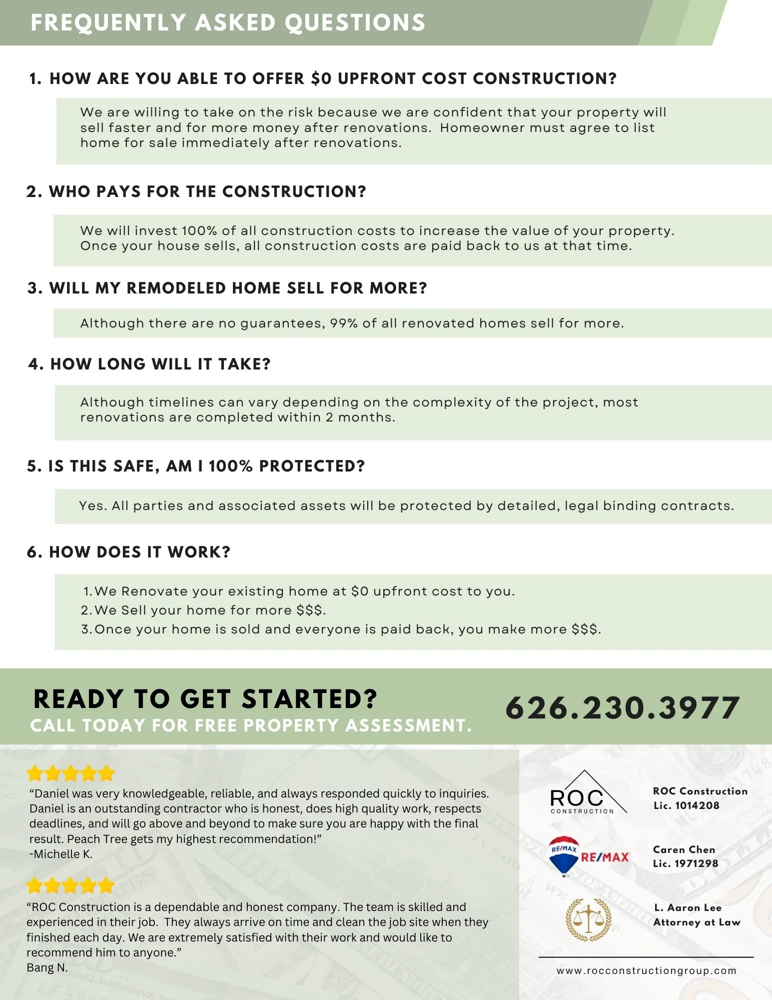 That’s where we come in. Our Fix Now, Pay After program allows you to renovate your home before selling, with no upfront costs. We complete the construction first, we help you sell your home, everyone gets paid back, then you pocket more money because your home sold for more!